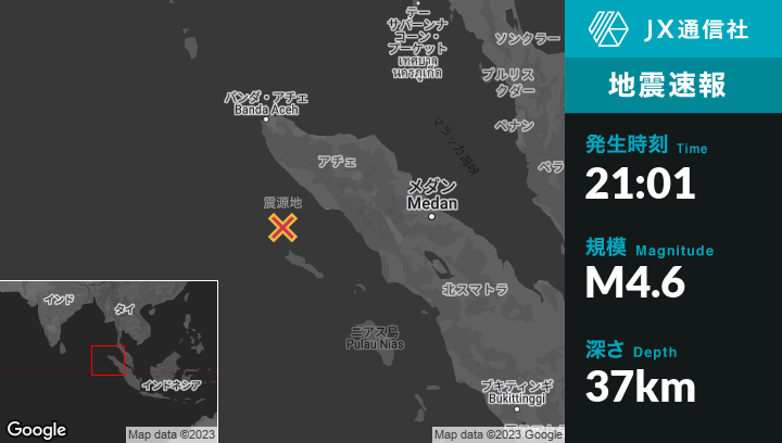 | 震源地 | インドネシアのMeulabohから南西88kmの地点 |