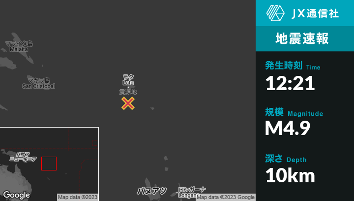 2月26日 12:21頃、ソロモン諸島のLataから南63kmの地点でM4.9の地震がありました。