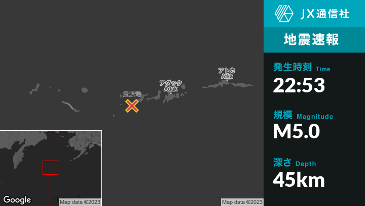 | 震源地 | アラスカのAdakから西南西120kmの地点 |