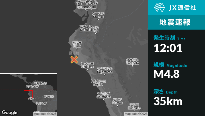 | 震源地 | ペルーのSechuraから南37kmの地点 |