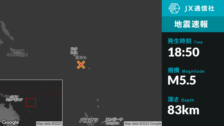 | 震源地 | ソロモン諸島のLataから南東80kmの地点 |