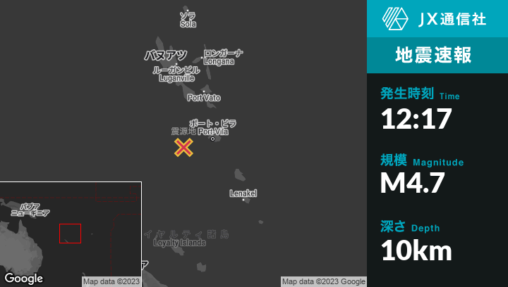 | 震源地 | バヌアツのPort-Vilaから西95kmの地点 |