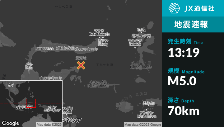 | 震源地 | インドネシアのLuwukから北東106kmの地点 |