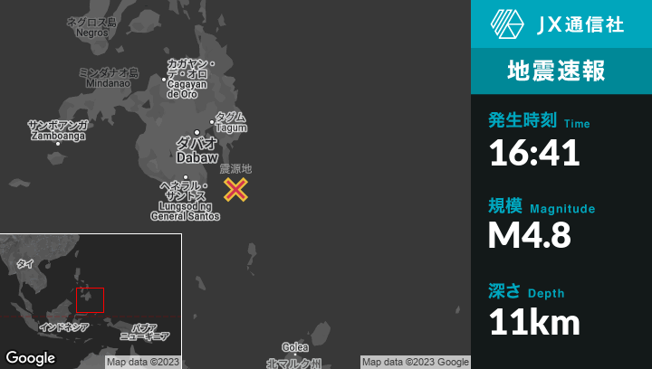 | 震源地 | フィリピンのPondaguitanから南南東52kmの地点 |