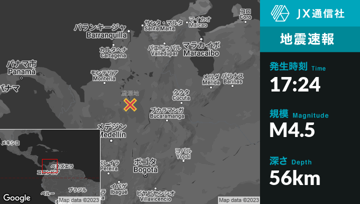 | 震源地 | コロンビアのSan Carlosから北14kmの地点 |