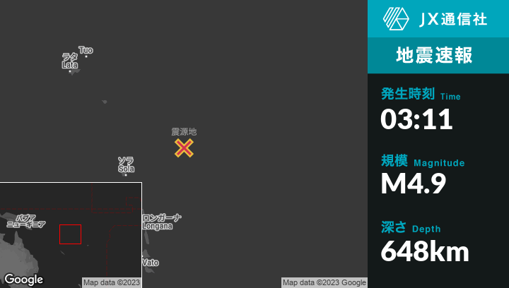 | 震源地 | バヌアツのSolaから東北東219kmの地点 |