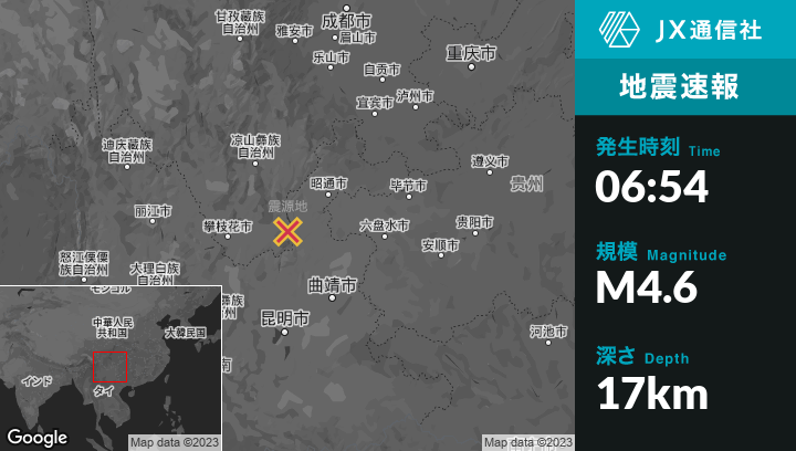 | 震源地 | 中国のZhaotongから南西100kmの地点 |