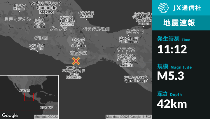 | 震源地 | メキシコのSan Jerónimo Coatlánから北西8kmの地点 |