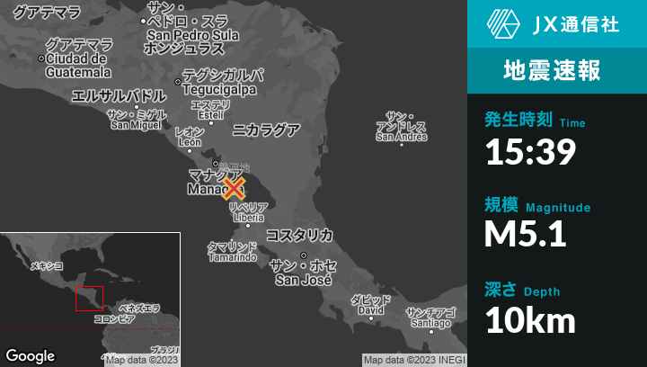 | 震源地 | ニカラグアのMoyogalpaから北西16kmの地点 |