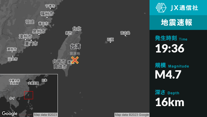 | 震源地 | 台湾のHualien Cityから南南西88kmの地点 |
