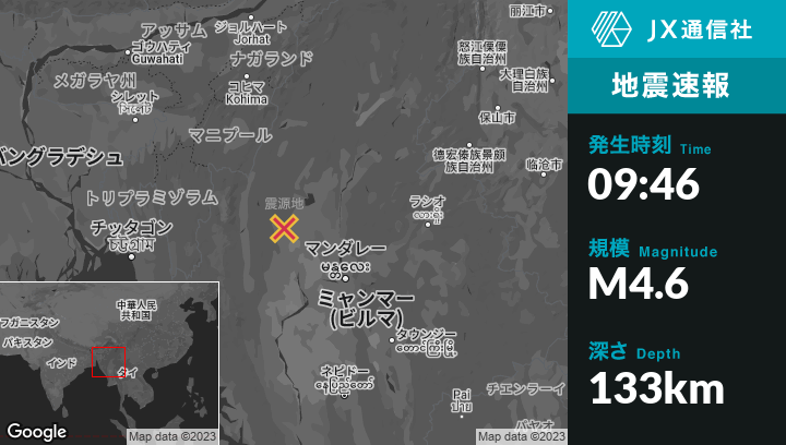 | 震源地 | ミャンマーのMawlaikから南南東84kmの地点 |