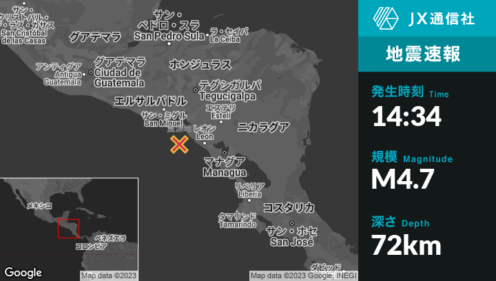 | 震源地 | ニカラグアのJiquililloから南西37kmの地点 |