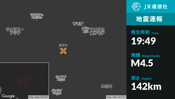 4月10日 19:49頃、トンガのHihifoから北8kmの地点でM4.5の地震がありました。