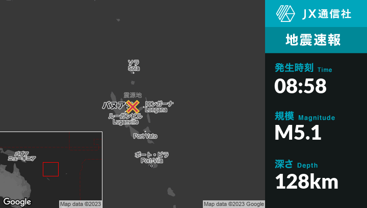 | 震源地 | バヌアツのPort-Olryから東南東48kmの地点 |