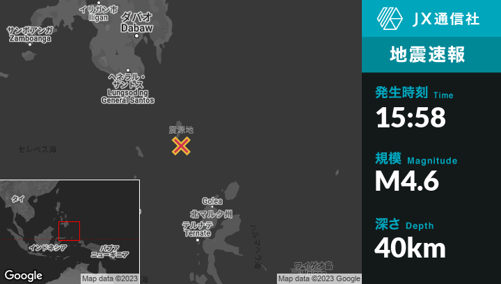 | 震源地 | フィリピンのSaranganiから南東227kmの地点 |