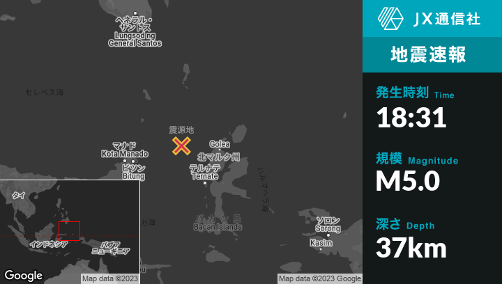 | 震源地 | インドネシアのTobeloから西北西157kmの地点 |