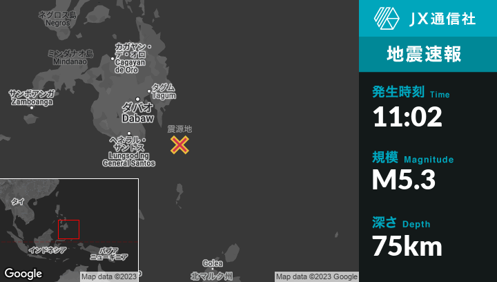 | 震源地 | フィリピンのPondaguitanから南東86kmの地点 |