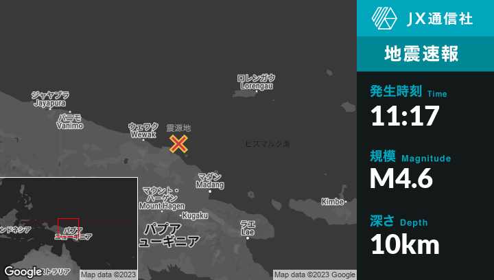 | 震源地 | パプアニューギニアのAngoramから北東96kmの地点 |