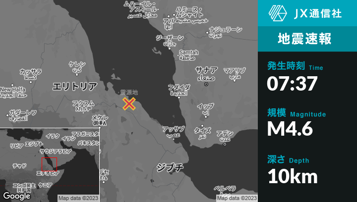 | 震源地 | エリトリアのEddから北西128kmの地点 |