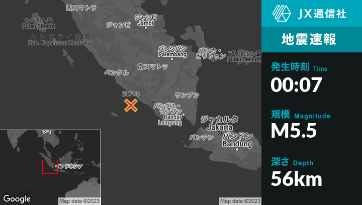 | 震源地 | インドネシアのPagar Alamから南南西97kmの地点 |