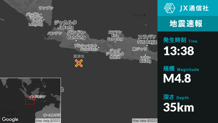 | 震源地 | インドネシアのSingaparnaから南南西123kmの地点 |