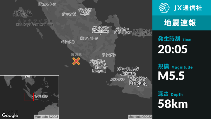 | 震源地 | インドネシアのPagar Alamから南南西101kmの地点 |