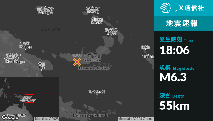 | 震源地 | パプアニューギニアのKandrianから北北東23kmの地点 |