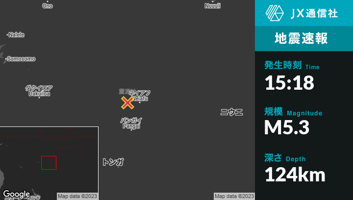 4月21日 15:18頃、トンガのNeiafuから西北西59kmの地点でM5.3の地震がありました。