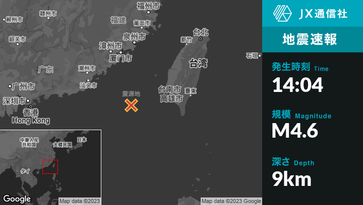 4月22日 14:04頃、台湾のMagongから南西161kmの地点でM4.6の地震がありました。