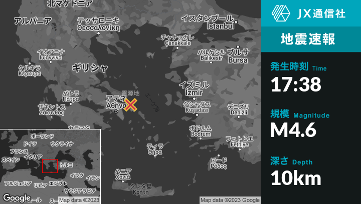 | 震源地 | ギリシャのNéa Stíraから北東19kmの地点 |