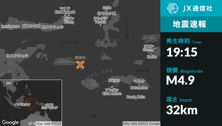 | 震源地 | インドネシアのSananaから北北西14kmの地点 |