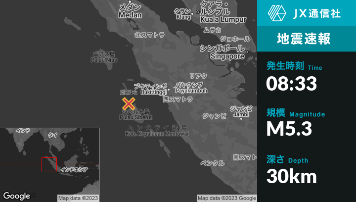 | 震源地 | インドネシアのPariamanから西169kmの地点 |