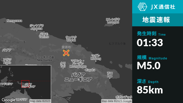 | 震源地 | パプアニューギニアのAmbuntiから東南東48kmの地点 |