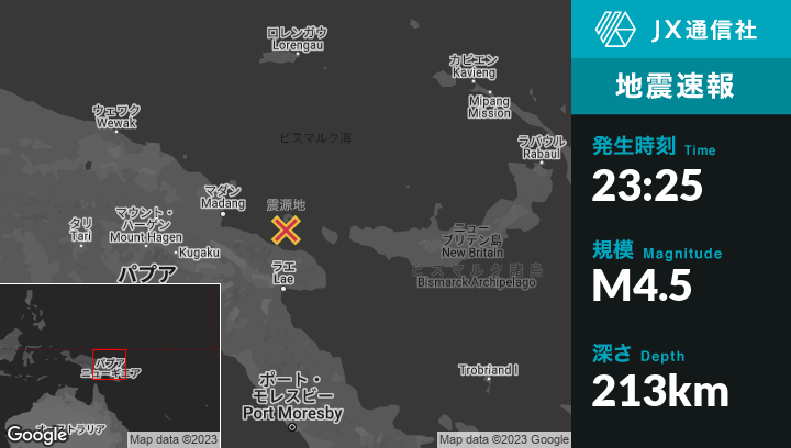 | 震源地 | パプアニューギニアのMadangから東140kmの地点 |