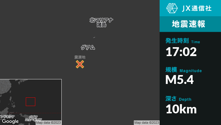 | 震源地 | グアムのMerizo Villageから南南西108kmの地点 |