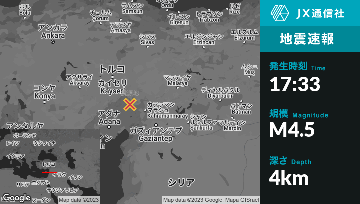 | 震源地 | トルコのSaimbeyliから南東17kmの地点 |