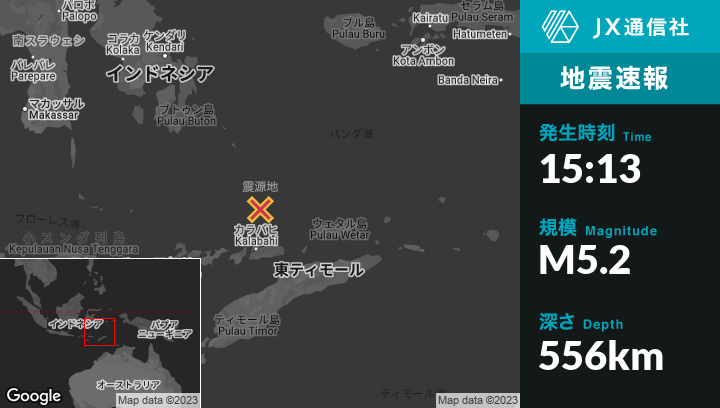 | 震源地 | 東ティモールのMaubaraから北北西166kmの地点 |