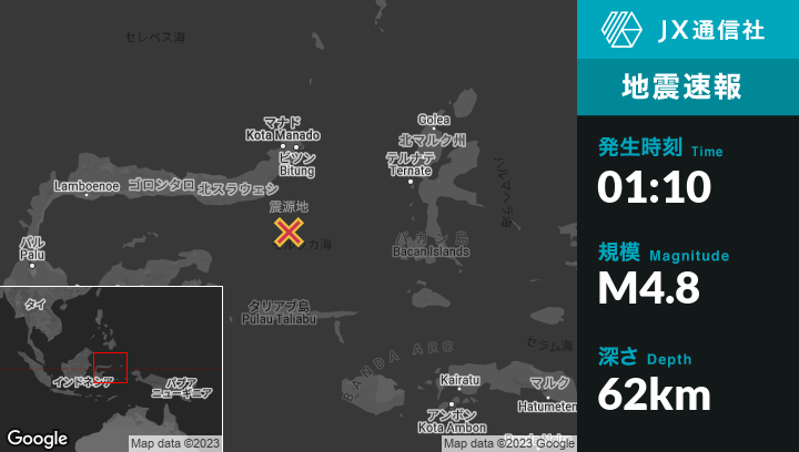 | 震源地 | インドネシアのModisiから南東85kmの地点 |