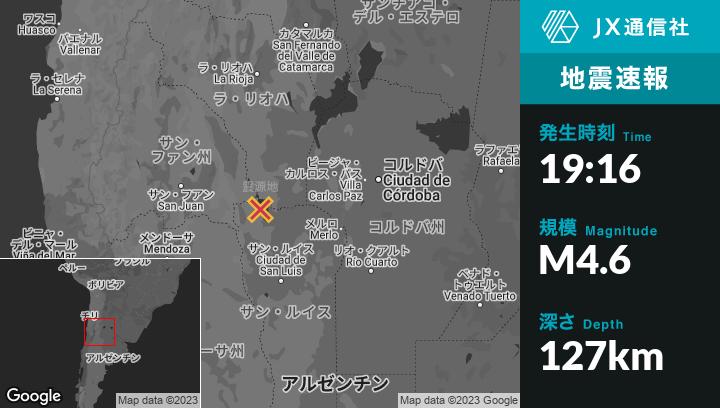 | 震源地 | アルゼンチンのVilla General Rocaから北北西93kmの地点 |