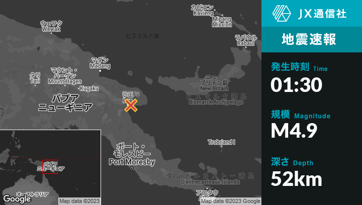 | 震源地 | パプアニューギニアのLaeから北東19kmの地点 |