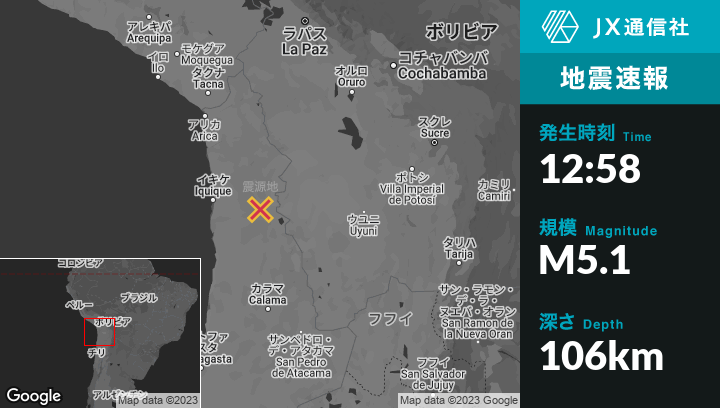 | 震源地 | チリのLa Tiranaから東57kmの地点 |