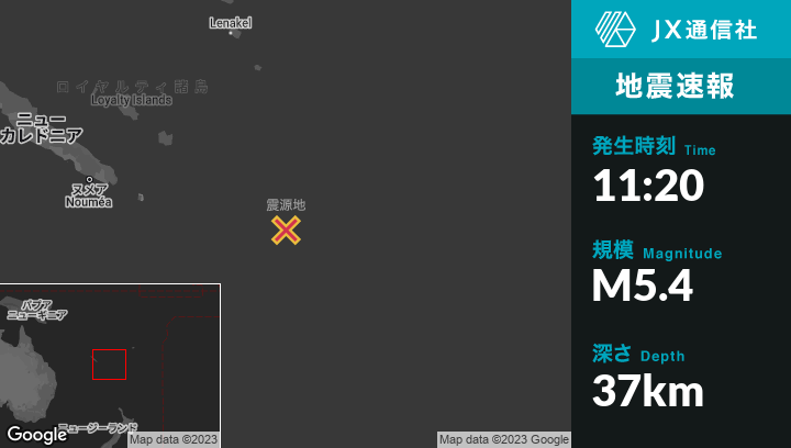 | 震源地 | ニューカレドニアのVaoから東298kmの地点 |
