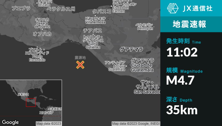 | 震源地 | メキシコのEl Palmarcitoから南西118kmの地点 |
