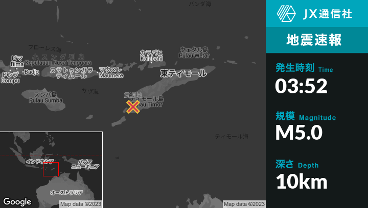 | 震源地 | インドネシアのKupangから北北東26kmの地点 |