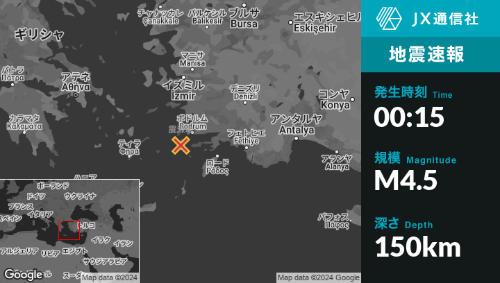 | 震源地 | ギリシャのAntimácheiaから西4kmの地点 |