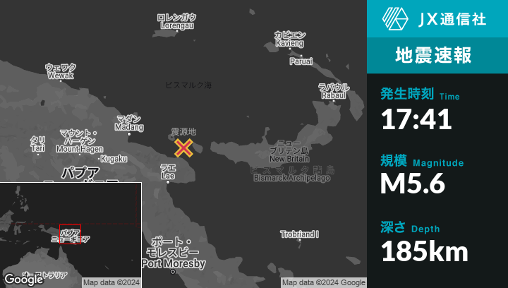 | 震源地 | パプアニューギニアのFinschhafenから北北西119kmの地点 |