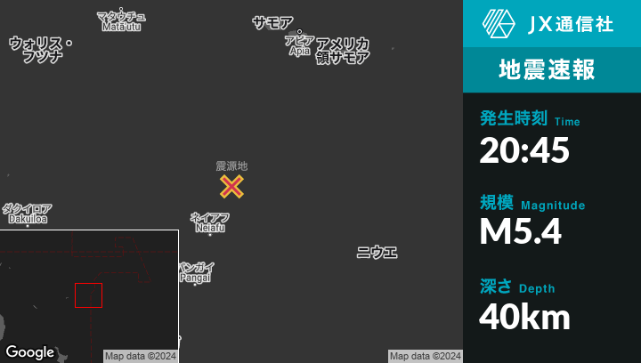 | 震源地 | トンガのNeiafuから北北東150kmの地点 |