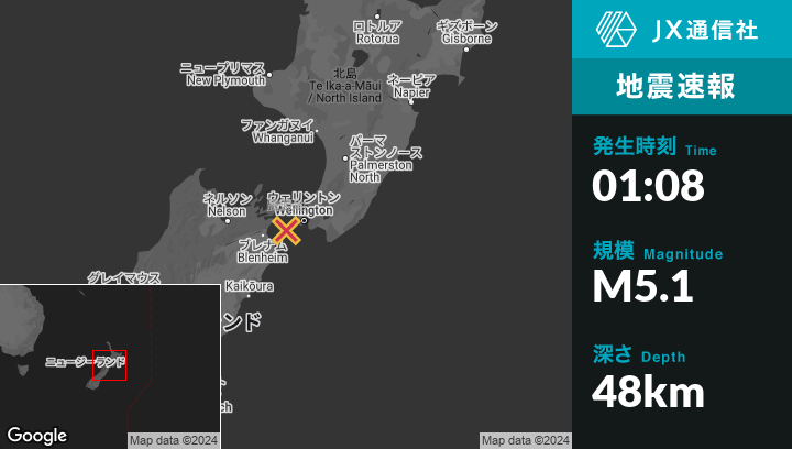 | 震源地 | ニュージーランドのKaroriから西南西27kmの地点 |