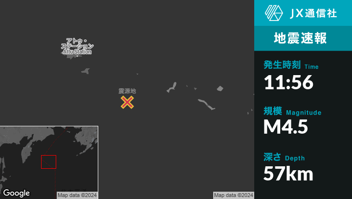 10月06日 11:56頃、アラスカのAttu Stationから南東205kmの地点でM4.5の地震がありました。