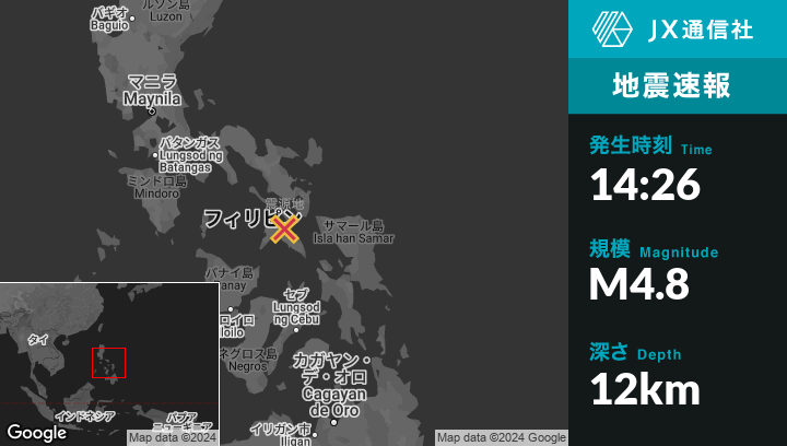 | 震源地 | フィリピンのMasbateから北北東5kmの地点 |